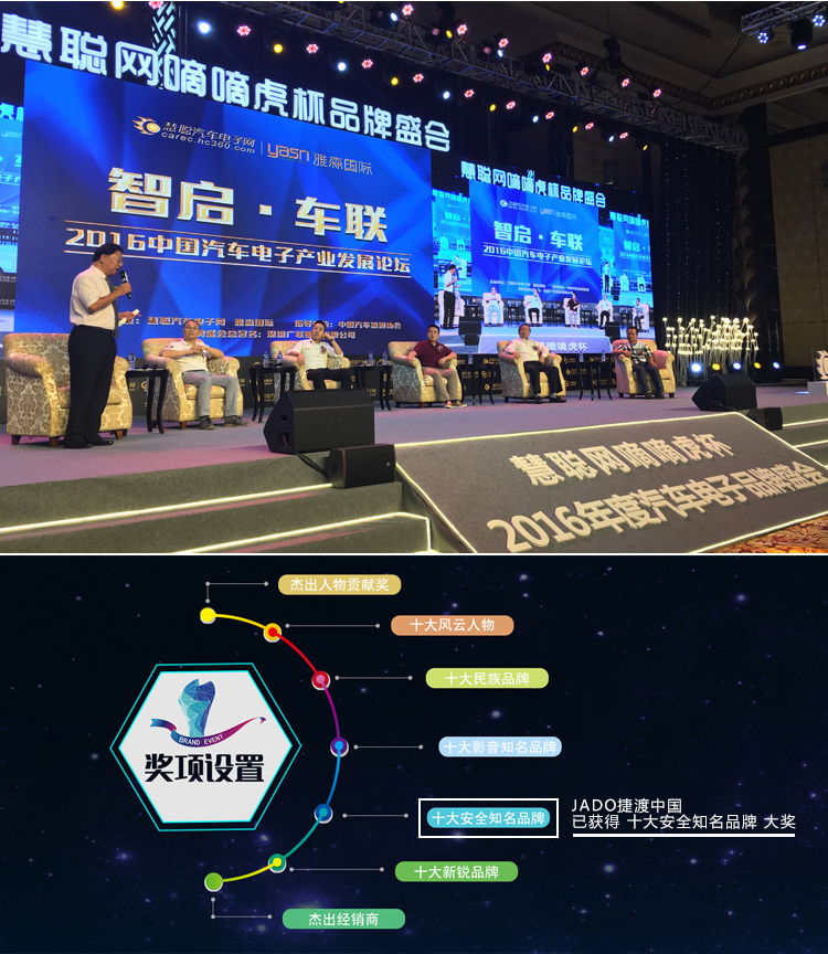 捷渡中國(guó)榮獲“2016年度汽車電子行業(yè)品牌盛會(huì)•汽車安全電子十大知名品牌”大獎(jiǎng)