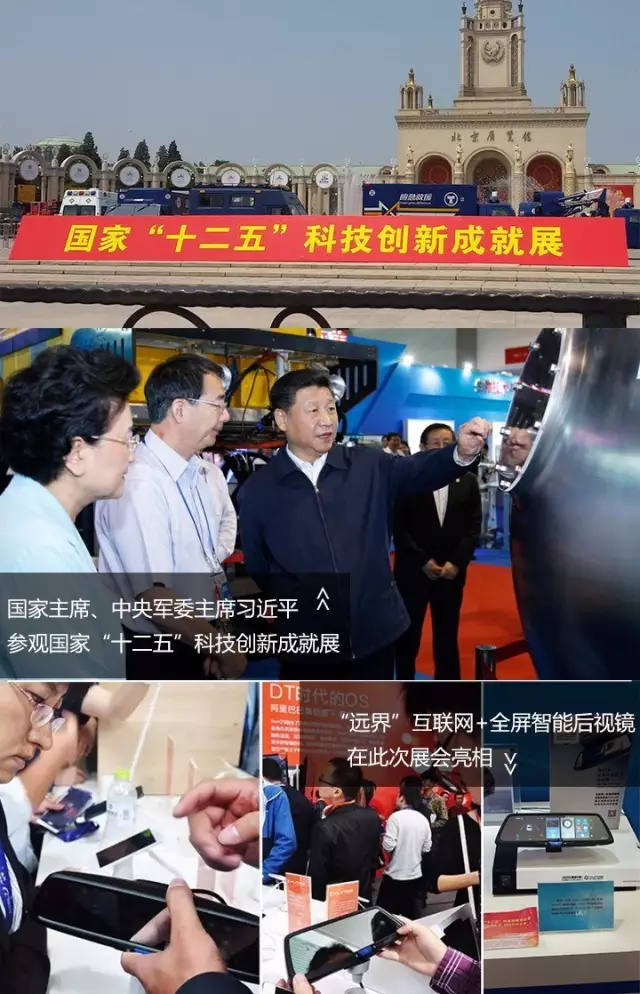 JADO捷渡遠(yuǎn)界全屏YunOS智能后視鏡在此次展會(huì)重點(diǎn)亮相。國(guó)家主席、中央軍委主席習(xí)近平、中國(guó)人民解放軍陸軍紀(jì)委書(shū)記吳剛等參觀了國(guó)家“十二五”科技創(chuàng)新成就展。