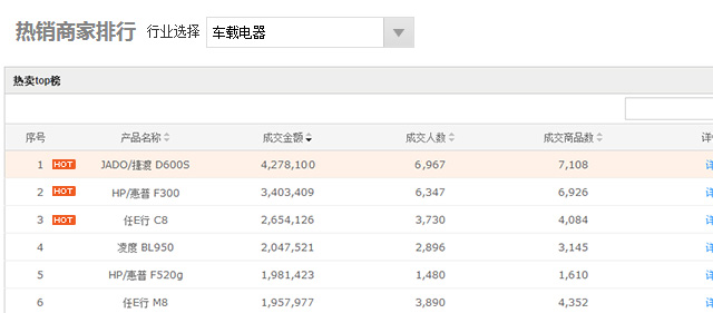熱銷寶貝排行榜中, 捷渡 成交量獨(dú)占鰲頭 :