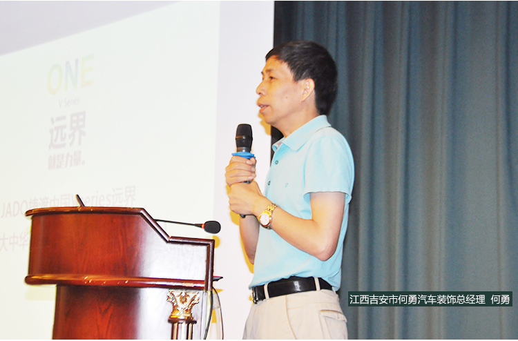 會(huì)議伊始,江西舒美汽車用品有限公司、浙江肯諾汽車用品有限公司、福建玖諾汽車用品有限公司、江西吉安市何勇汽車裝飾有限公司的負(fù)責(zé)人和項(xiàng)目經(jīng)理與大家一起總結(jié)和分享了JADO捷渡V Series遠(yuǎn)界的“體驗(yàn)有禮,e路驚喜”促銷活動(dòng)。