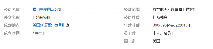以上內(nèi)容來自于百度百科,欲了解更多關(guān)于霍尼韋爾,可瀏覽其官方網(wǎng)頁。http://www.honeywell.com.cn/