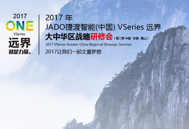 2017年10月15日,以“讓我們一起丈量夢(mèng)想 ”為主題的2017年JADO捷渡智能(中國(guó))VSeries遠(yuǎn)界大中華區(qū)戰(zhàn)略研修會(huì)在安徽黃山溫泉酒店隆重舉行。