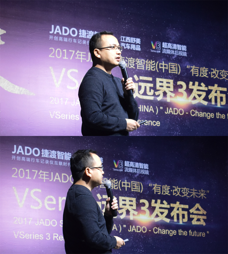 JADO捷渡智能(中國(guó))產(chǎn)品總監(jiān)吳樂(lè)明先生上臺(tái)致辭,重點(diǎn)為大家闡述了 VSeries遠(yuǎn)界系列產(chǎn)品的設(shè)計(jì)理念。面對(duì)行業(yè)的白熱化競(jìng)爭(zhēng),如何從產(chǎn)品端去精準(zhǔn)把握市場(chǎng),進(jìn)而引領(lǐng)后視鏡未來(lái)的廣闊市場(chǎng)。前裝與后裝并存、專業(yè)與智能的完美融合,VSeries遠(yuǎn)界3給了大家一個(gè)最佳的選擇。