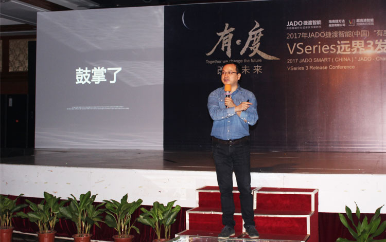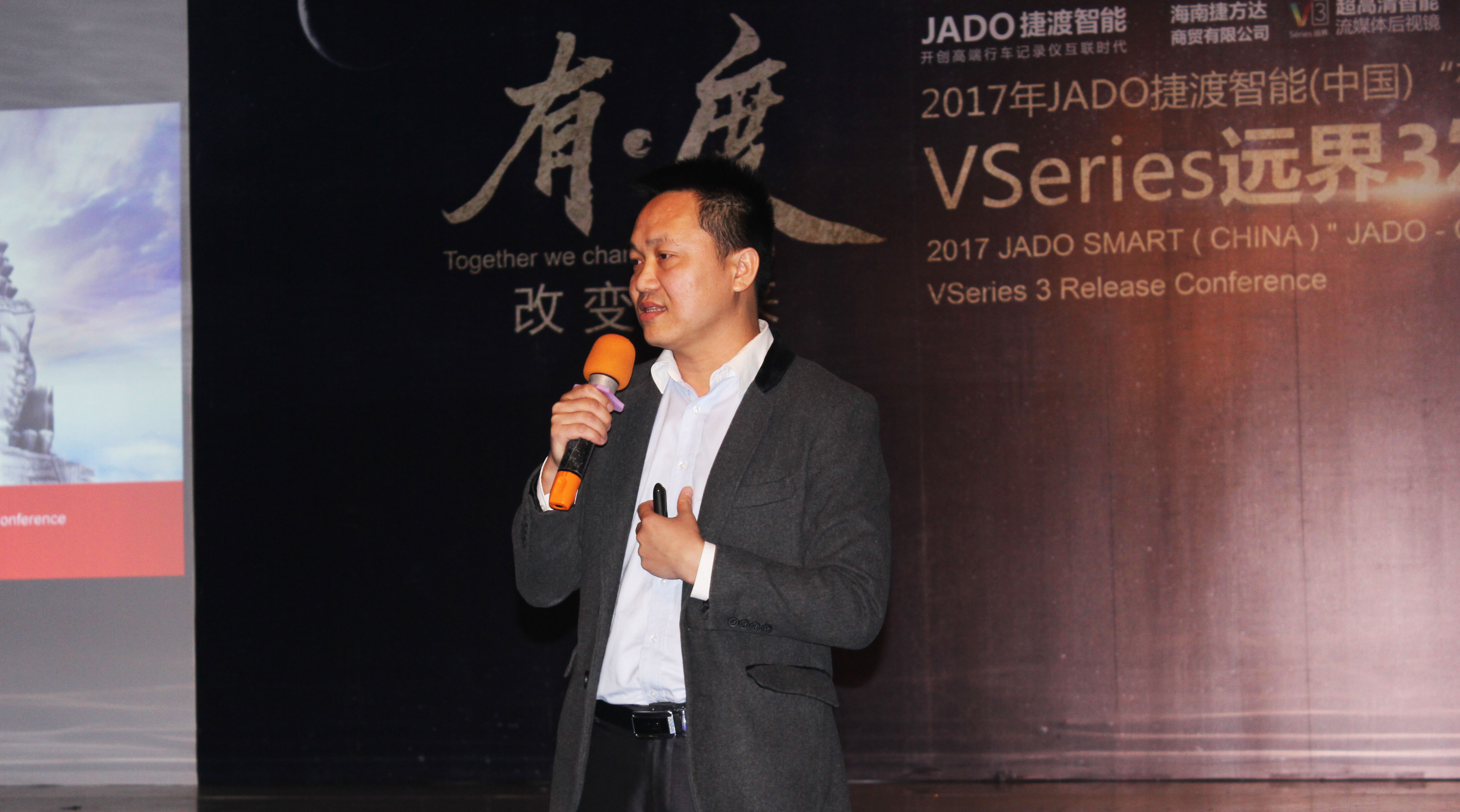 JADO捷渡智能(中國(guó))產(chǎn)品總監(jiān)吳樂(lè)明先生上臺(tái)致辭,重點(diǎn)為大家闡述了 VSeries遠(yuǎn)界系列產(chǎn)品的設(shè)計(jì)理念。前裝與后裝并存、專業(yè)與智能的完美融合,VSeries遠(yuǎn)界3給了大家一個(gè)最佳的選擇。