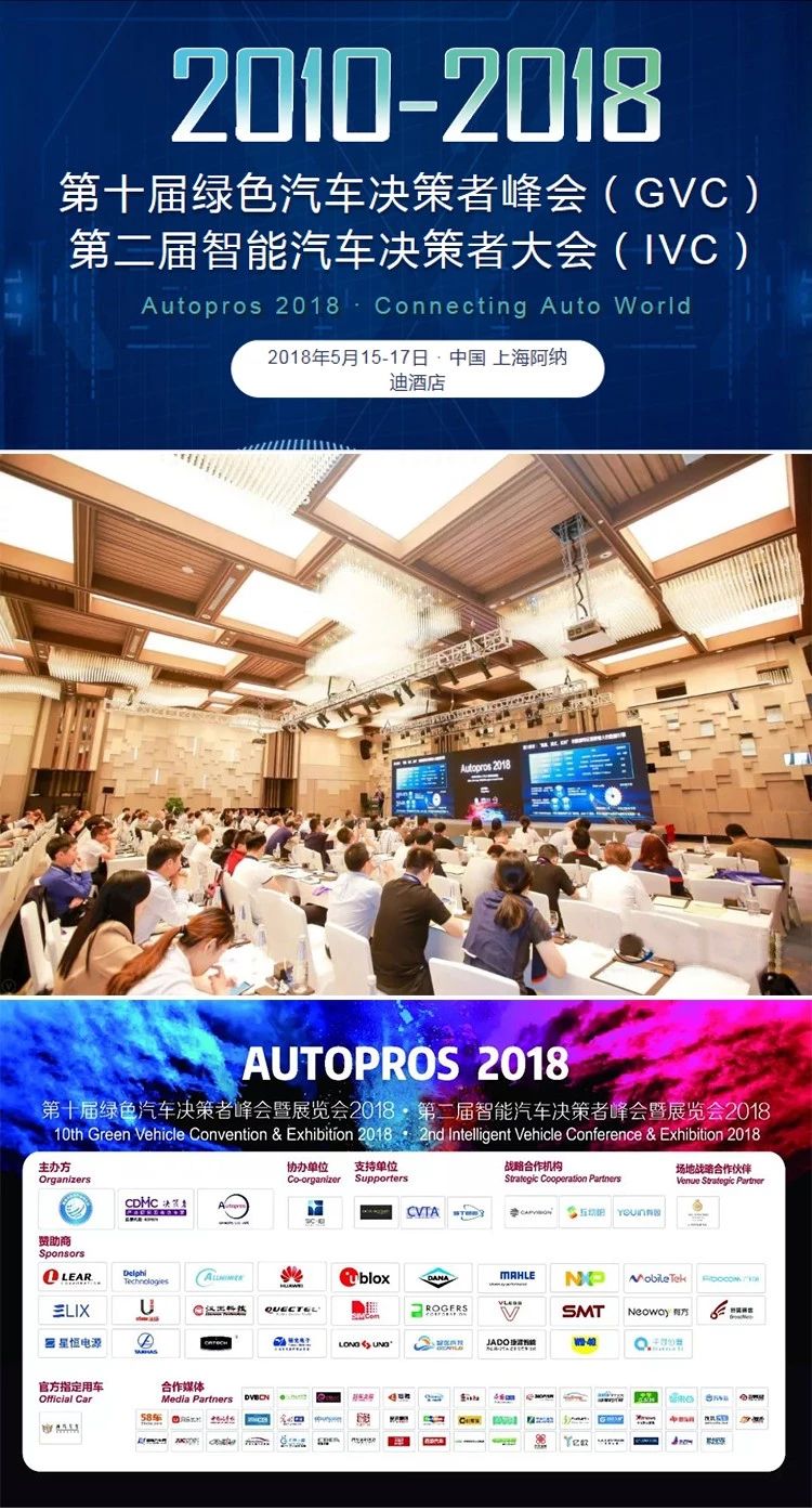 2018年5月15日-17日,由上海決策者經(jīng)濟顧問股份有限公司、上海決策者產(chǎn)業(yè)研究院汽車委員會主辦的Autopros2018第十屆綠色汽車暨第二屆智能汽車決策者峰會&展覽會在上海阿納迪酒店圓滿落幕,來自全世界的812位與會代表,305家企業(yè)受邀出席盛會,50家前裝車廠以及53家媒體現(xiàn)場報道,共同聚焦“綠色、智慧”出行,以創(chuàng)新思維迸發(fā)無限生機,探索未來科技帶來的無限想象。