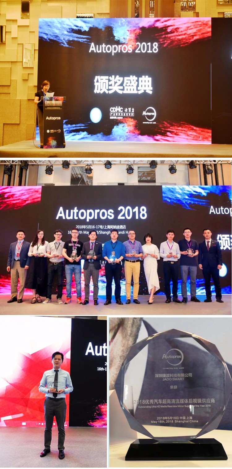 JADO捷渡智能(中國)作為大會現(xiàn)場唯一受邀的行車記錄儀行業(yè)代表,經(jīng)過組委會以及前裝車廠的專業(yè)評選,最終榮獲了“優(yōu)秀汽車超高清流媒體后視鏡供應商”大獎,JADO捷渡智能(中國)營銷中心副總經(jīng)理劉赟先生代表出席并領獎,讓前裝車廠對JADO捷渡智能(中國)流媒體后視鏡有了深刻的了解。