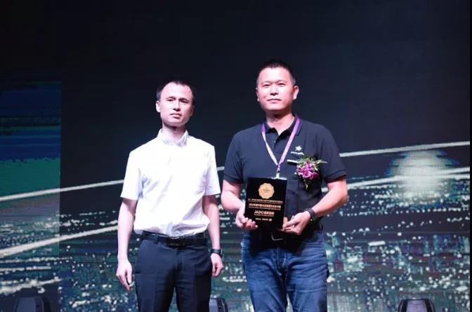 接下來(lái)是大會(huì)的頒獎(jiǎng)環(huán)節(jié),由廣匯集團(tuán)集采總經(jīng)理 何思先生為JADO捷渡智能(中國(guó))頒發(fā)了“2018年度中國(guó)4S店集團(tuán)杰出合作獎(jiǎng)” 獎(jiǎng)項(xiàng),JADO捷渡智能(中國(guó))總經(jīng)理陳問(wèn)文先生代表JADO捷渡智能(中國(guó))上臺(tái)領(lǐng)獎(jiǎng)。