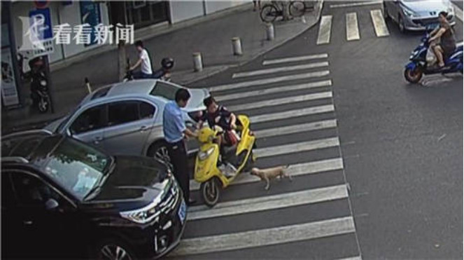 夏季天氣炎熱,狗狗也煩躁不安,易出現(xiàn)異常,且變得極具攻擊性。江蘇太倉市民張女士就遇到了這種事,不僅是把她嚇的夠嗆,還造成了交通事故。張女士騎著一輛黃色電動(dòng)車疾馳而來,行駛到斑馬線的時(shí)候,一只小狗竄到了電動(dòng)車前,張女士似乎非常怕狗,左躲右閃之下,駕駛電動(dòng)車撞上了前面的一輛銀灰色小轎車。