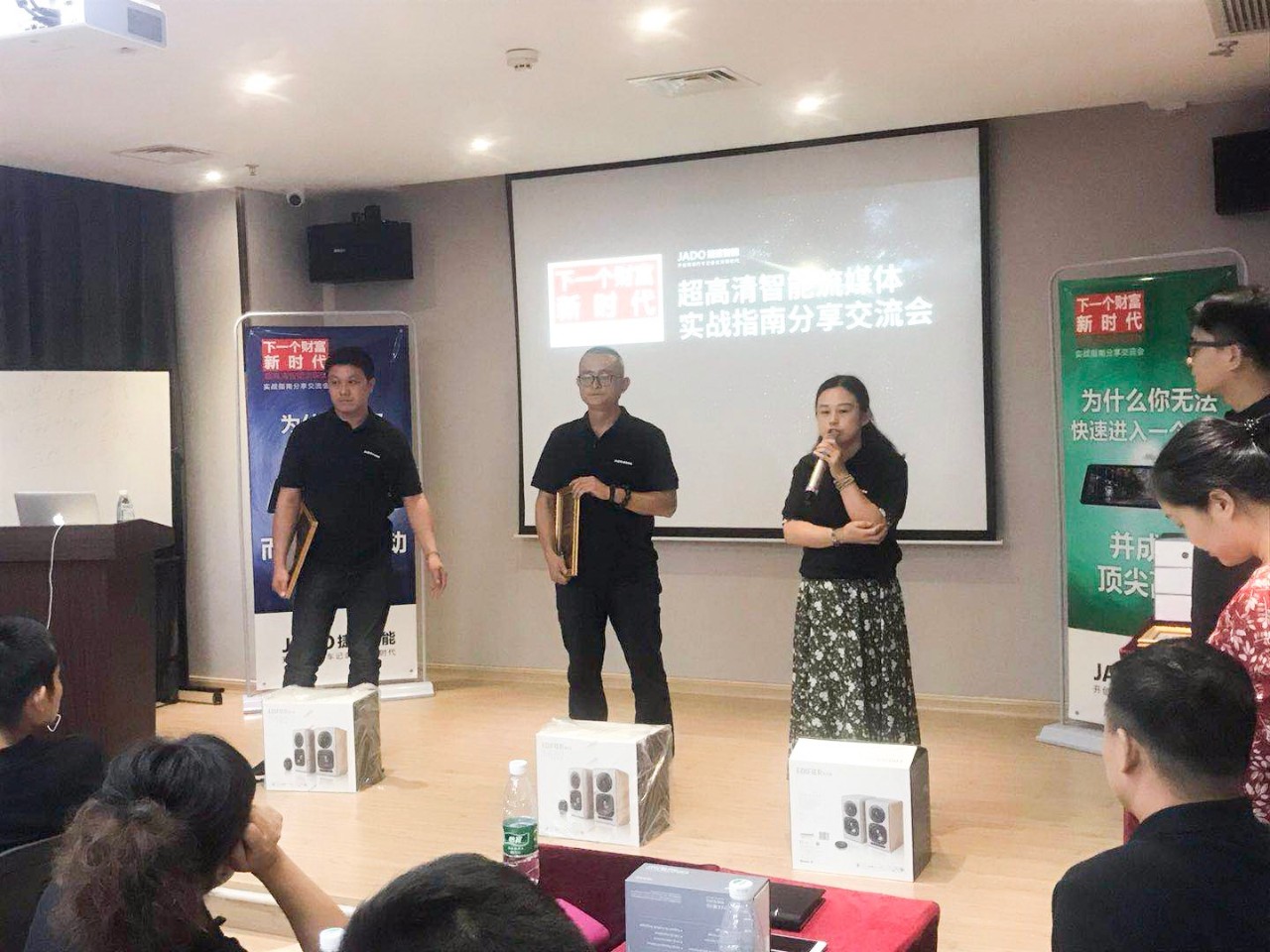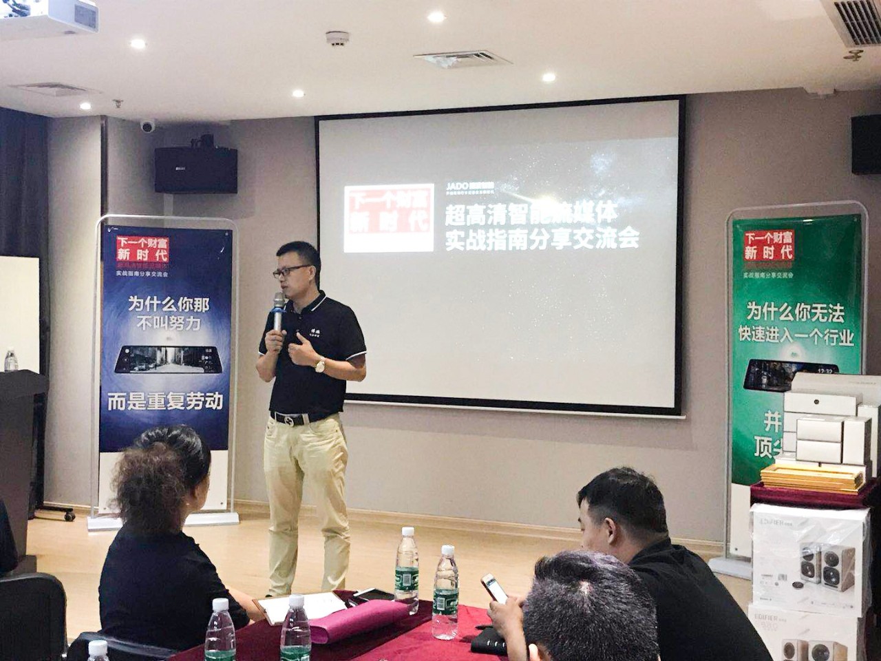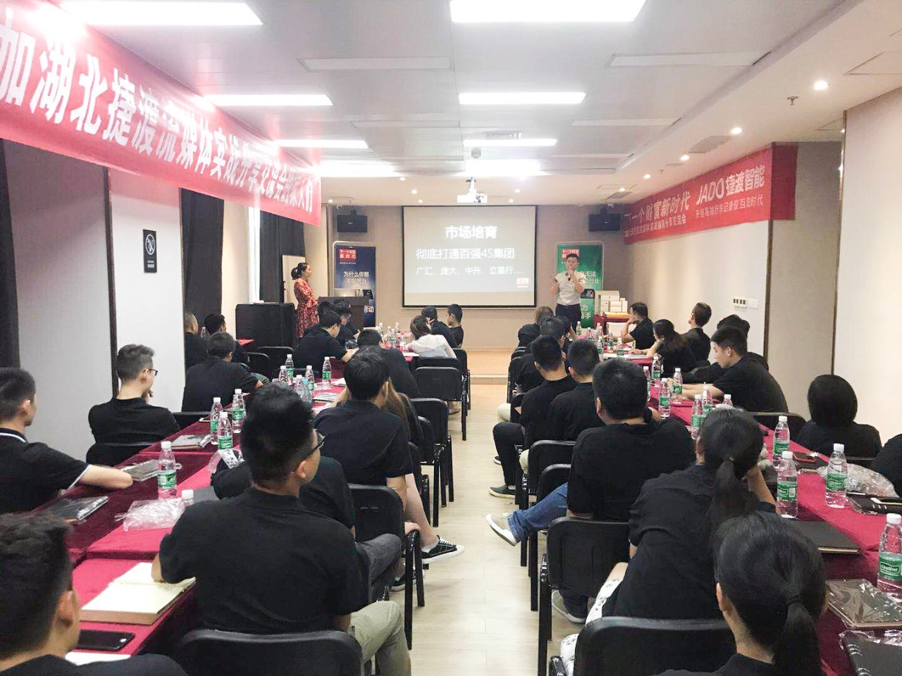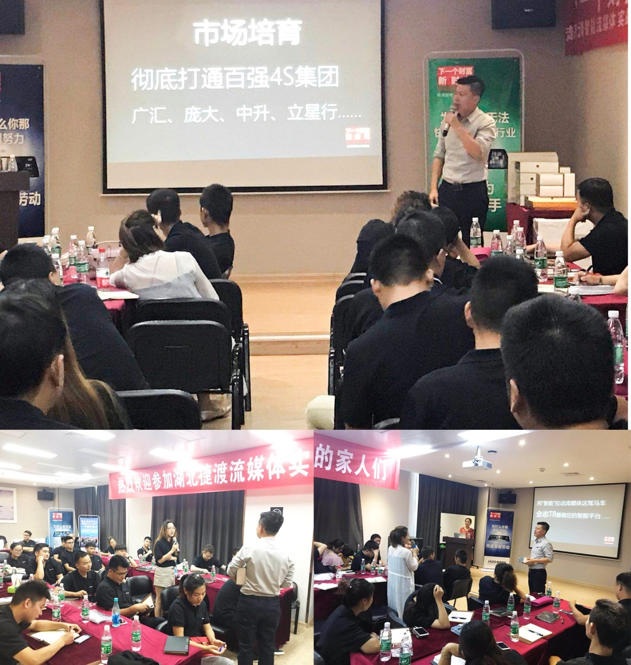 會(huì)上,JADO捷渡智能(中國)戰(zhàn)區(qū)負(fù)責(zé)人杜新先生,也做了分享和交流,杜新先生首先為大家分享了VSeries遠(yuǎn)界3——超高清智能流媒體后視鏡產(chǎn)品的銷售技巧, 講解了產(chǎn)品在未來的發(fā)展空間和趨勢,年輕化和創(chuàng)新的商業(yè)模式將會(huì)成為新一代的主流。并通過對目前全國一些優(yōu)秀終端店的成功經(jīng)驗(yàn)的總結(jié),以及不同區(qū)域的市場特點(diǎn)的分析,讓現(xiàn)場60余家終端店老板獲取到了有價(jià)值的分享,將此次交流培訓(xùn)會(huì)推向了高潮。