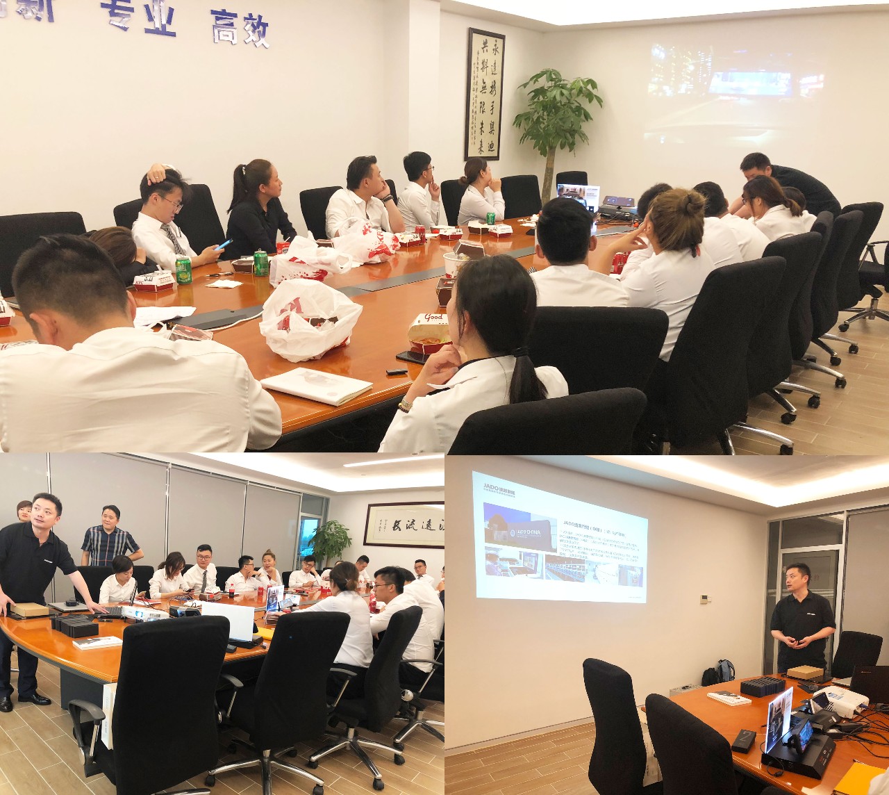 培訓(xùn)活動當天,由JADO捷渡智能(中國)4S渠道負責(zé)人易成康先生為大家呈現(xiàn)了一堂精彩的4S專供產(chǎn)品知識培訓(xùn)課程。易成康先生以圖片和視頻相結(jié)合的多媒體課件形式向銷售精英們介紹了VSeries遠界3超高清智能流媒體后視鏡的基本功能及操作方法,并對JADO捷渡智能(中國)的發(fā)展歷程進行了詳細的講解,使各位銷售精英們在為車主講解JADO捷渡智能(中國)4S店專供系列產(chǎn)品時不再迷茫。