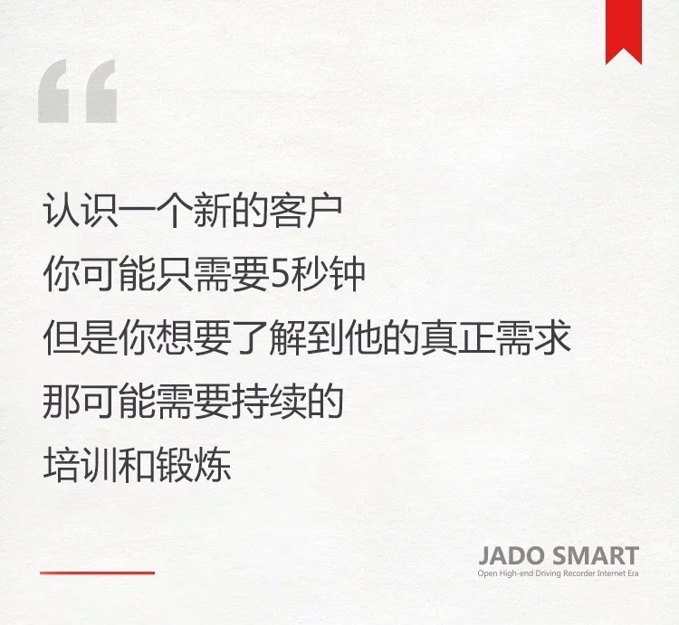 怎樣了解客戶(hù)的真實(shí)需求?從而讓客戶(hù)主動(dòng)接受你推薦的產(chǎn)品。2018年9月5日,帶著這些疑惑和思考,JADO捷渡智能(中國(guó))4S集團(tuán)交流培訓(xùn)會(huì)在期待中拉開(kāi)帷幕。