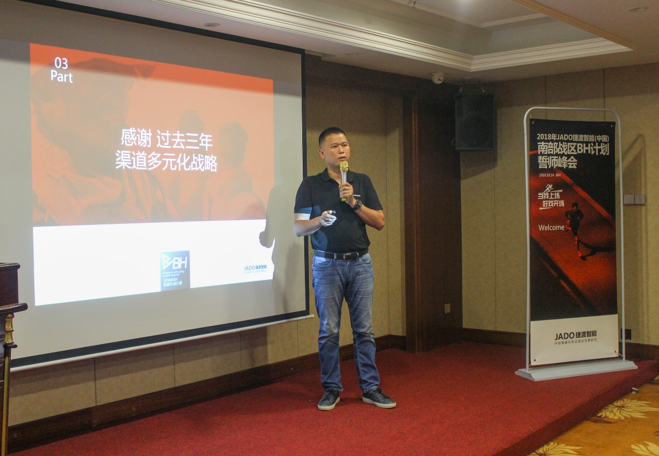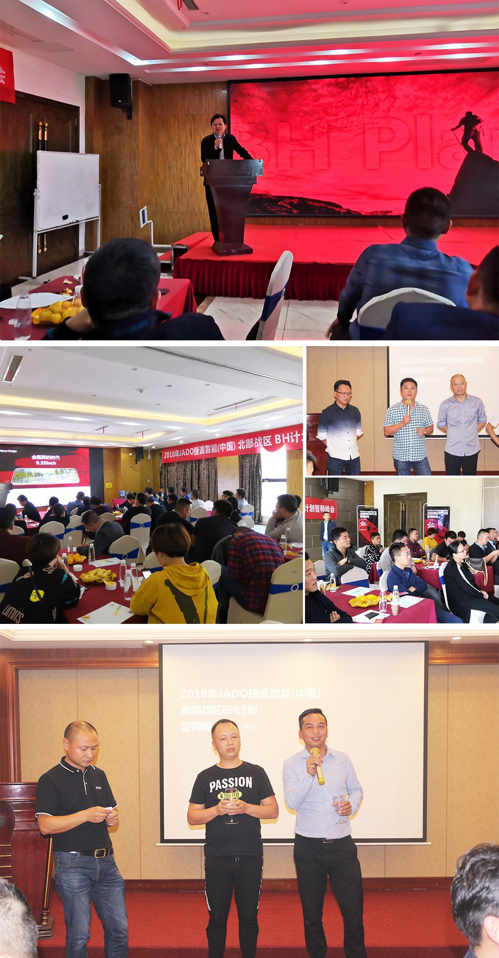 2018年10月14日、18日,JADO捷渡智能(中國(guó))分別在中國(guó)·深圳、合肥兩地舉行了主題為“當(dāng)我上場(chǎng),好戲開(kāi)場(chǎng)”的2018年度JADO捷渡智能(中國(guó))南部、北部戰(zhàn)區(qū)決勝終端誓師峰會(huì)。到場(chǎng)嘉賓有:JADO捷渡智能(中國(guó))董事長(zhǎng)王杰先生、營(yíng)銷中心總經(jīng)理陳問(wèn)文先生、營(yíng)銷中心副總經(jīng)理劉赟先生以及來(lái)自全國(guó)的戰(zhàn)略合作伙伴超過(guò)100人。