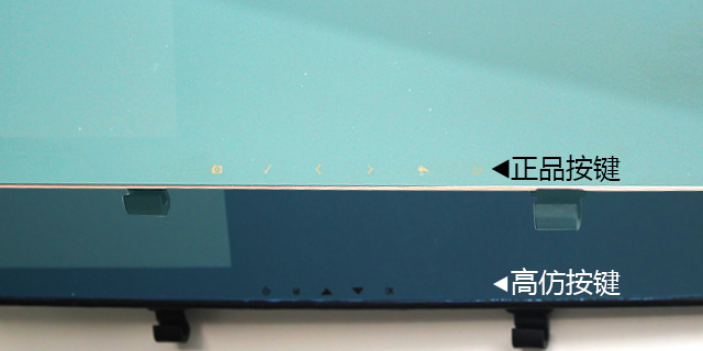 3、 正品捷渡 D610 中間下方功能按鍵為金色觸摸按鍵,而高仿為黑色,且觸摸不起作用,真正的按鍵隱藏在產(chǎn)品下方,操作十分不方便,屏幕上的按鍵只是一個(gè)假象。