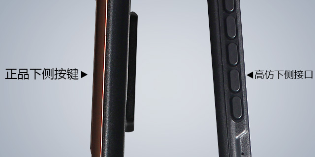 看產(chǎn)品側(cè)面,僅做工工藝就可以很明顯地看出正品捷渡 D610 與高仿的區(qū)別: