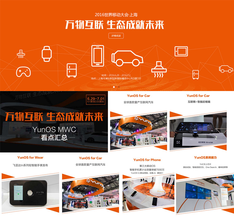 2016年6月29日-7月1日,在為期三天的展覽上,也是阿里巴巴YunOS連續(xù)第二年在MWC上亮相,通過大會(huì)向整體通信行業(yè)及產(chǎn)業(yè)鏈階段性展示YunOS幫助合作伙伴實(shí)現(xiàn)產(chǎn)業(yè)創(chuàng)新與升級(jí)的成果。JADO捷渡中國作為阿里巴巴YunOS 在行車記錄儀行業(yè)的第一家戰(zhàn)略合作伙伴受邀參展。