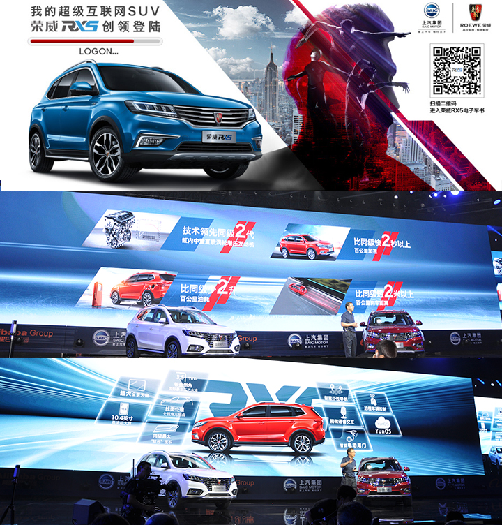 阿里和上汽合作推出的互聯(lián)網(wǎng)汽車榮威RX5于6日下午在杭州云棲小鎮(zhèn)發(fā)布,阿里巴巴創(chuàng)始人馬云、上汽集團董事長陳虹、阿里巴巴CEO張勇、阿里巴巴首席技術(shù)官王堅、錘子科技羅永浩、知名影視明星王珞丹等現(xiàn)身發(fā)布會現(xiàn)場。鳳凰衛(wèi)視主持人許戈輝擔任本次發(fā)布會主持。