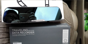 • 高端大氣上檔次后視鏡行車記錄儀上身(前+后)