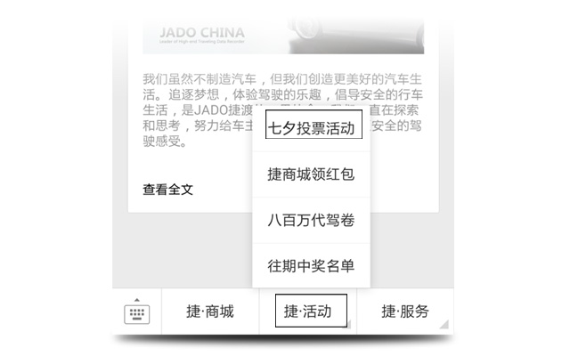 關(guān)注并打開公眾號[捷渡中國]點擊[捷·活動]--[七夕投票活動]
