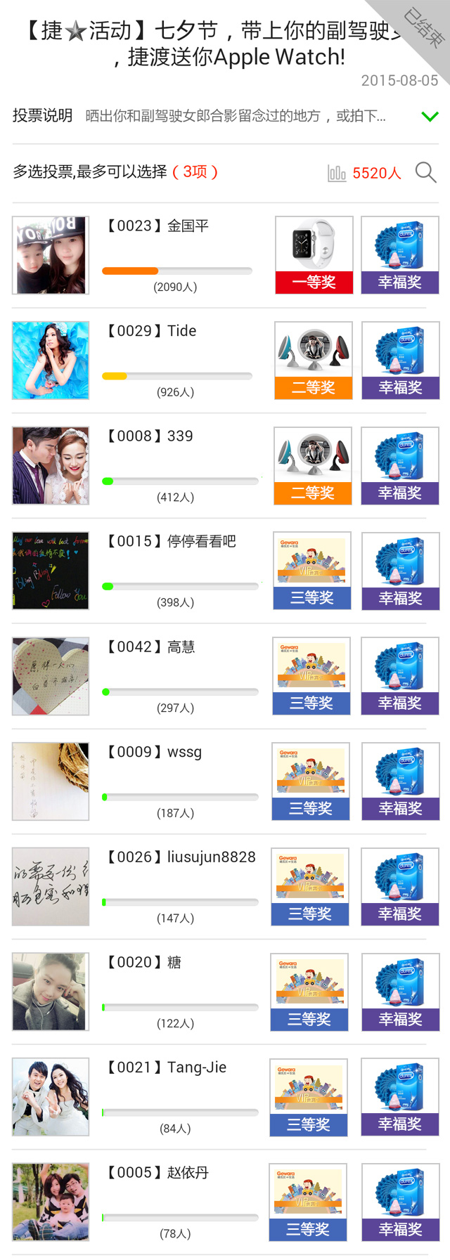 活動結(jié)束后按票數(shù)評出一、二、三等獎