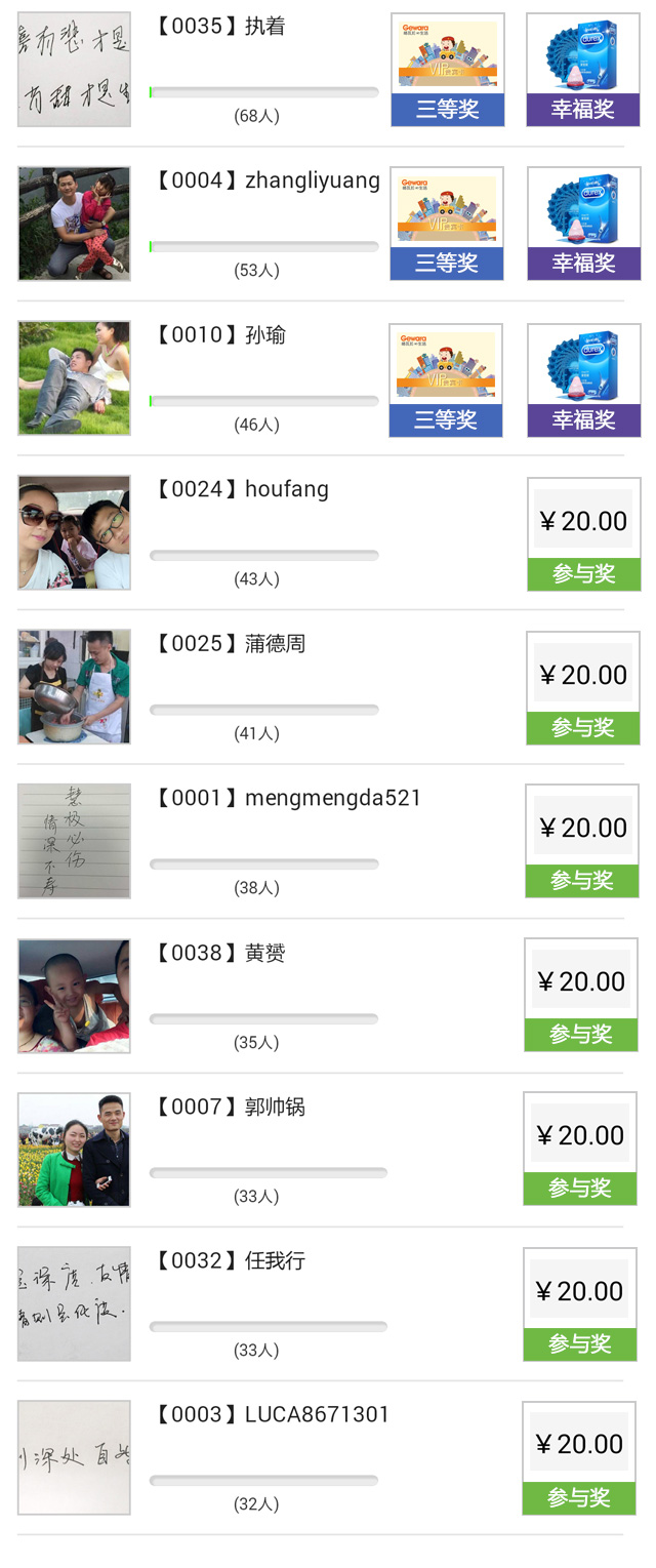 未進入前三等獎的100名參與者,票數(shù)達到30票以上,皆可獲得20元微信紅包一個。